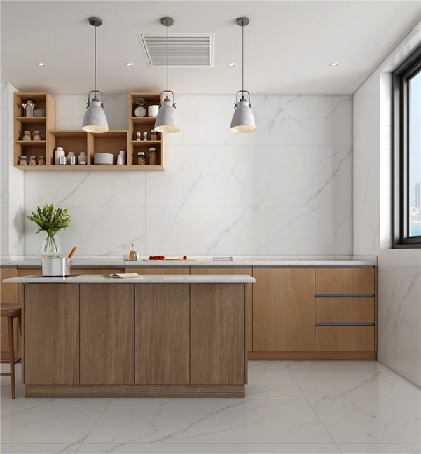 而且大理石瓷砖通常采用现代优雅的图案元素来设计,这样产品搭配一些面积相对大点儿的厨房空间,就会显得非常的优雅高端。