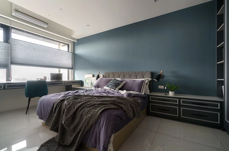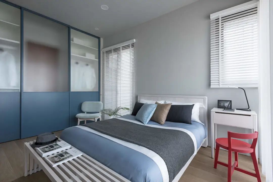 千万不能忽视装修色彩和灯光对人的情绪影响,像红黄蓝绿等高饱和度的亮色会刺激人的大脑神经,而卧室应该选择安神清爽的沉稳色彩,像浅蓝、米白、浅蓝这些温馨柔和之色彩。