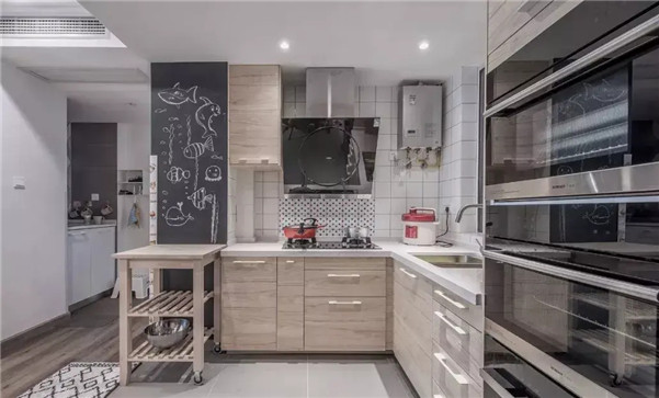 开放式的厨房,L型的布局让厨房看起来相当宽敞。
