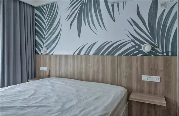 简单的主卧,墙布比较亮眼,颇有趣味。