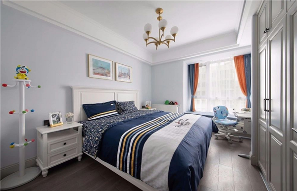 儿童房延续浅色基调,撞色软装呈现不一样的活跃氛围,营造符合孩子的年轻朝气。