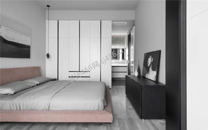 103平现代风格三居室卧室床装修效果图