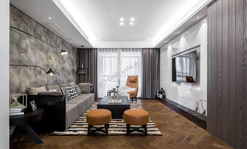 117平现代风格三居室客厅沙发背景墙装修效果图
