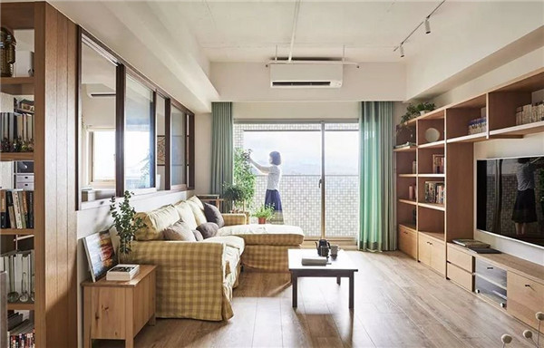 客厅设计追求一种淡雅深邃的意味,化繁为简,摈弃过多的修饰,大面积原木色与白色结合,搭配清新自然、线条简洁的家具,加上绿色点缀一二,达到一个舒适的居住状态。