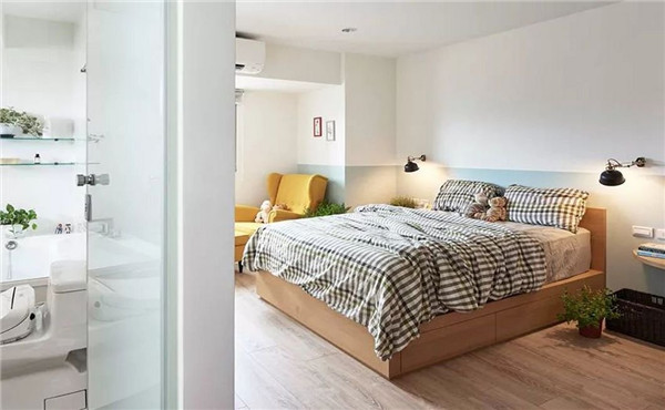 设计理念:这个房子是的主人是一位女幼师,整体装修以简洁大方的日式风格为基调,整体简约的空间加入大量的木质饰面板装饰墙面,再搭配上现代优雅的家居布置,呈现出一个和谐自然的温馨与安静画面,寓意着主人的文静雅致的气质。