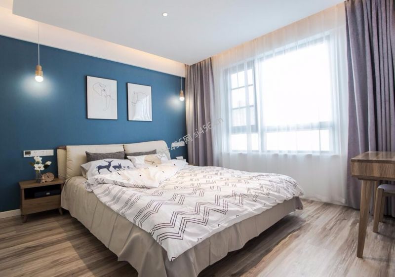 现代风格115平三居室卧室背景墙颜色装修效果图