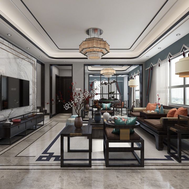 新中式风格132平三居室客厅沙发装修设计图片