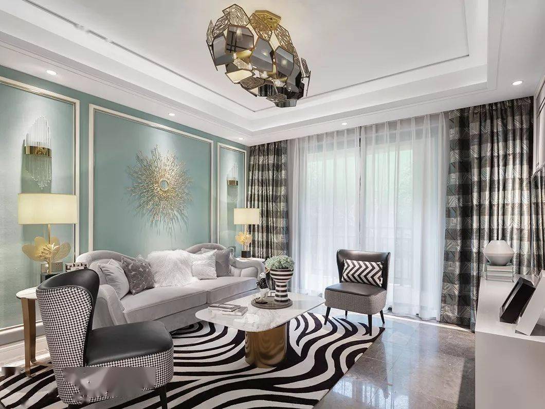 时尚的蒂凡尼蓝间结合一抹黑白,如一抹花卷,让客厅呈现出了灵动而优雅的气质。即便没有怦然心动,但总有一隅可以填满内心的期许。