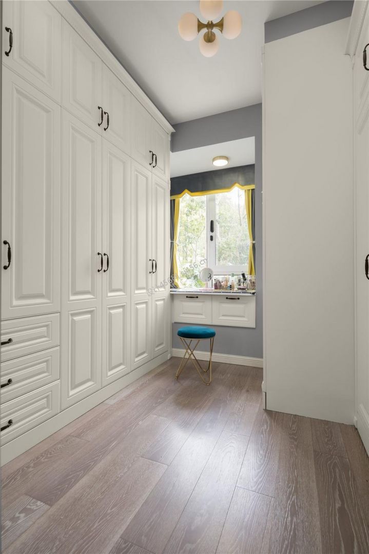 设计理念: 这套设计采用现代美式风格,在色彩上采用了大量以高雅、简洁的浅色系作为主色,营造出通透又高级的视觉环境,打造出了一个既有品位又简洁大气的生活空间。 以深蓝色、藏青色等深色系作为辅色,即时尚又复古,简约却不失大气,与整个空间的风格相得益彰。 客厅顶部运用了现代简洁的吊顶造型,与墙面装饰形成了对比,不仅可以起到修饰作用还能使室内光线变得更加明亮。 这套设计采用现代美式风格,在色彩上采用了大量以高雅、简洁的浅色系作为主色,营造出通透又高级的视觉环境,打造出了一个既有品位又简洁大气的生活空间。 以深蓝色、藏青色等深色系作为辅色,即时尚又复古,简约却不失大气,与整个空间的风格相得益彰。 客厅顶部运用了现代简洁的吊顶造型,与墙面装饰形成了对比,不仅可以起到修饰作用还能使室内光线变得更加明亮。