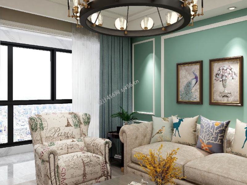 98平米美式客厅三居室装修效果图