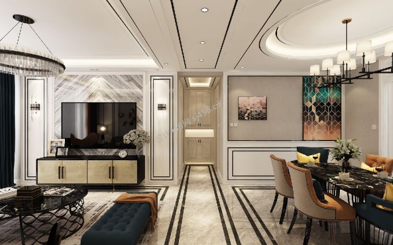 115平现代简约吊顶三居室装修效果图