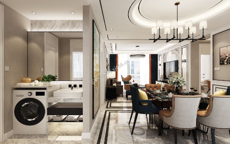 115平现代简约洗手台三居室装修效果图