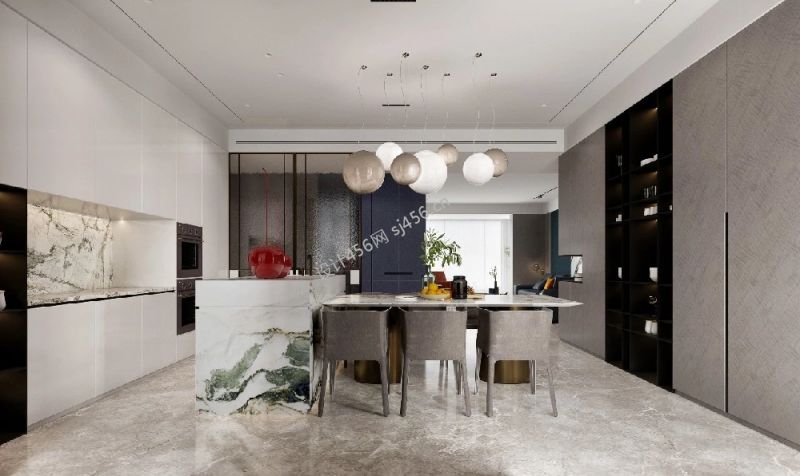 180平米现代简约餐厅吊顶三室装修效果图