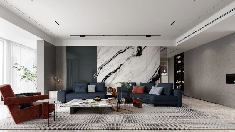 180平米现代简约客厅三室装修效果图