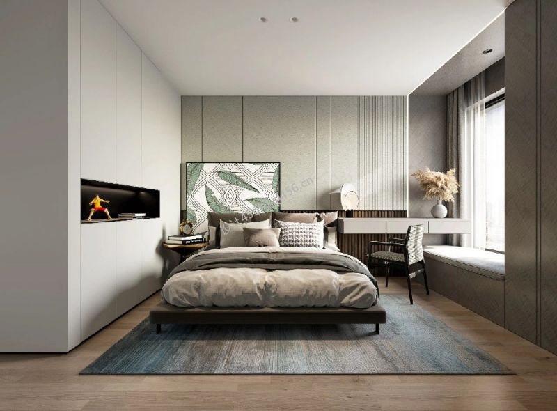 180平米现代简约卧室飘窗三室装修效果图
