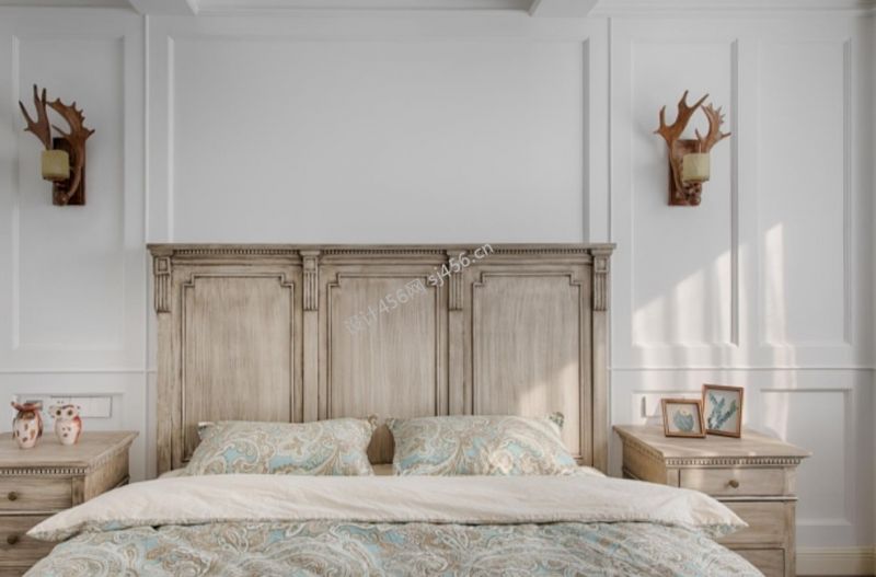 150平米三居室美式田园卧室床头装修案例