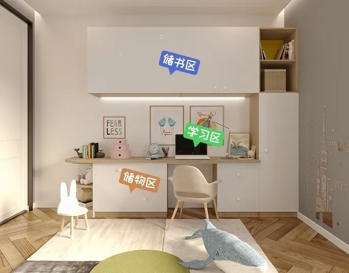 学习区单独划分,也是帮助孩子建立独立学习人格的一个重要举动,千万别忽视!同时,要注意培养孩子的收纳习惯,也有助于孩子良好性格养成。