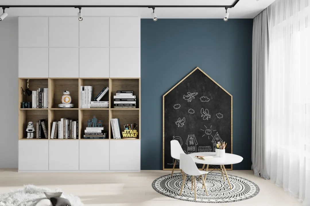 ①3-5岁:需要更多的亲子陪伴,在空间规划中,可以加上一些有趣的互动设计,如:儿童帐篷、黑板墙、乐高墙、故事角等。