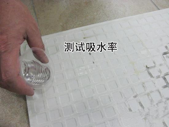 为什么要倒水,自然是为了看瓷砖的吸水率。吸水率低说明密度越大,密度大质量也就更好!但也不是所有瓷砖都是吸水率越低越好的!测试方法:拿一块客厅、卧室、走道区域的瓷砖,取一点水分别倒在瓷砖的正反两面,看水渗透的情况(干的快慢),就抛光砖而言,水要是马上吸进去,那就不好了,说明瓷砖密度小,遇到劣质抛光砖了!而吸水慢的,说明密度大品质、硬度等等也就更好了!