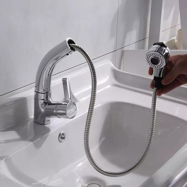 建议洗漱台使用抽拉式水龙头,其更加的灵活方便,日后洗头、洗脸使用起来也更加的便利。