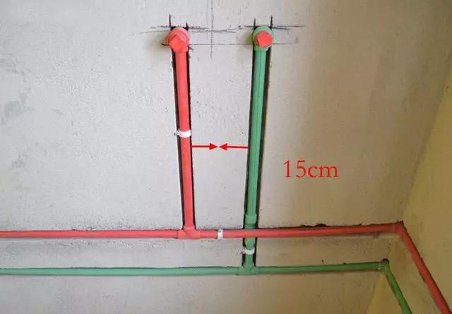 冷热水管安装上要保持垂直,避免影响洁具安装,且冷热水管间距至少15cm,避免相互影响。