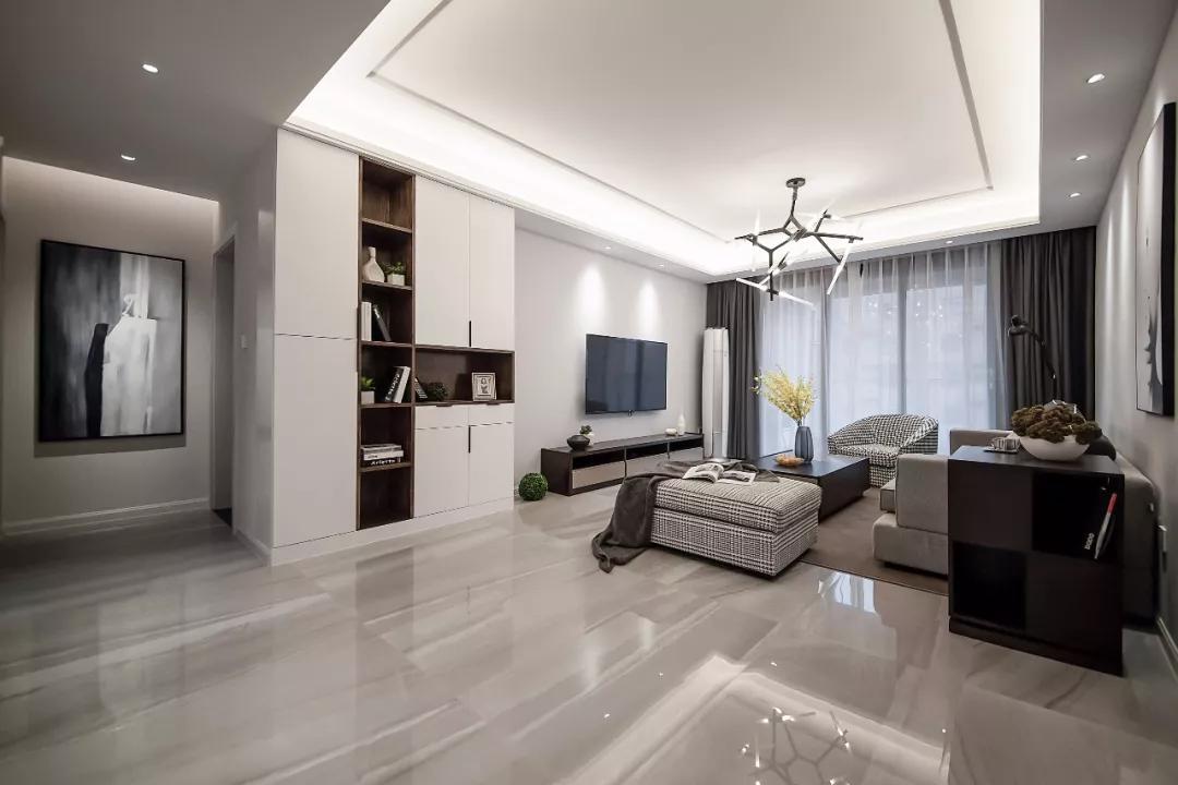 入户就是客餐厅的户型,整体选择了灰色系作为主调,给人的感觉就是格外的素雅,却也显得非常的高级。