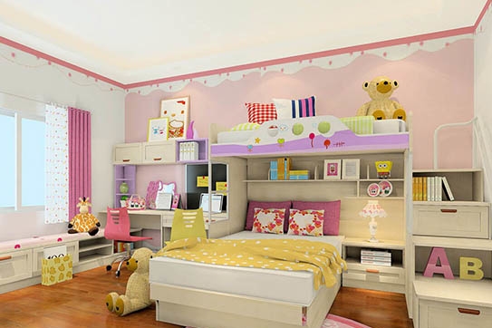 首先,儿童房的装修注意事项主要体现在建筑材料的选择上。要选择对儿童身体影响最小的建筑材料。现在的装修材料释放的最多就是对身体有危害的甲醛。因此,儿童房应该尽量少用些装修材料,选择一些环保绿色的装修材料。除此之外也可以购买多用途的家具,这样既节省了地方,又可以减少甲醛释放。在墙壁颜色的选择上,颜色尽量明亮,有利于孩子的身心发展。如果房间小,建议用抗甲醛的墙面漆,如果房间较大,建议使用去甲醛墙纸,既实惠又安全。如果是婴儿房,从墙贴到地板都要使用环保材料。还有最重要一点就是在装修完毕之后一定不要立即入住,应该先开窗通风一段时间后再入住。入住之后还应该每天开窗通风,保持空气流畅,尤其是婴儿房。