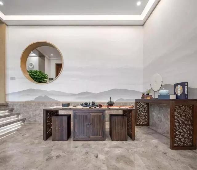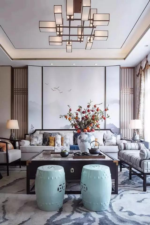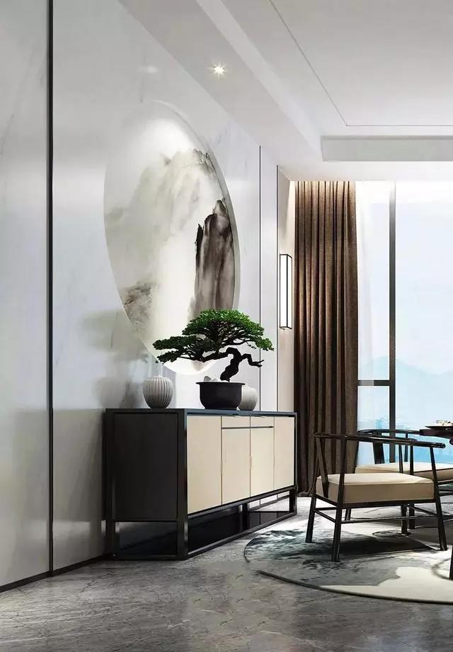 新中式一般很少大范围的使用新中式元素装饰,而是小范围的点缀,更能营造出意境。新中式比较追求留白的设计,因为它能够更好的营造空灵深远、泼墨写意的空间氛围。