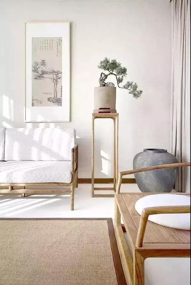 新中式的家具很少全部使用传统的明清家具,因为这样会让空间显得太过沉重,没有200㎡的房子,根本hold不住。所以新中式比较追求线条简单、造型流畅的家具,建议使用宋、明两代的风格家具,相比清朝简化了不少,较为素雅内敛。