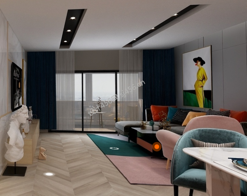 现代风格130平米三居室客厅沙发背景墙装修效果图