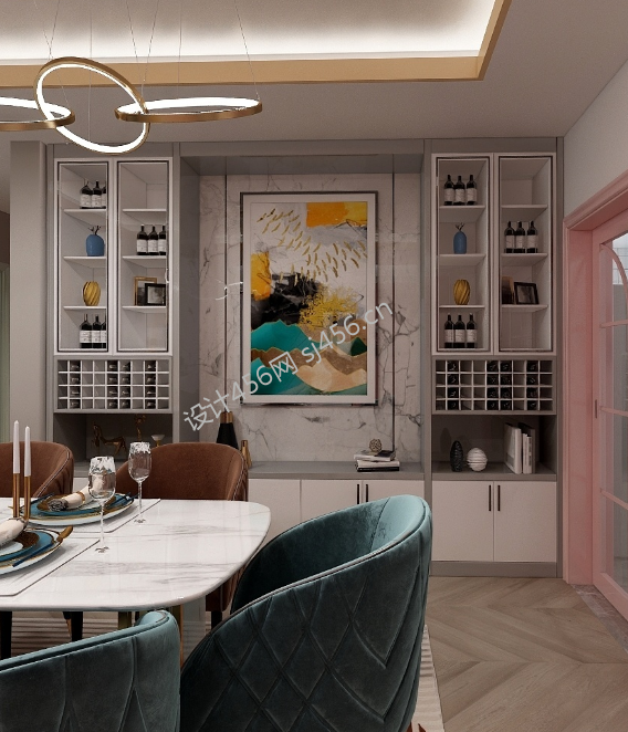 现代风格130平米餐厅吊顶灯饰装修效果图