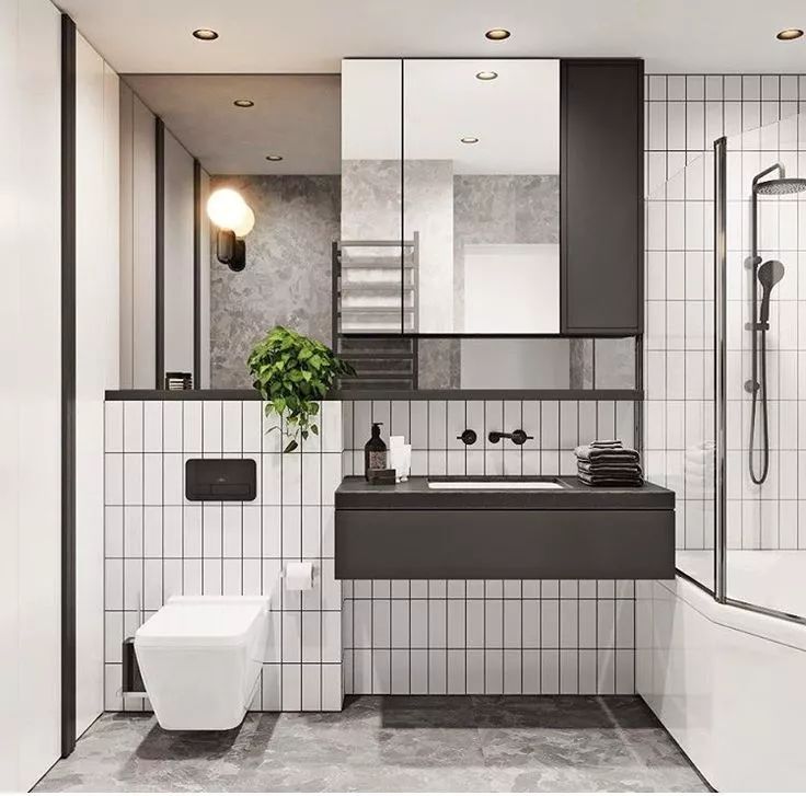 选墙地砖的时候,尽量选择亮色系,增加室内的明亮度。另外,尽量保证卫生间均匀明亮的光线。在淋浴区、镜子前最 好加入辅助光源。