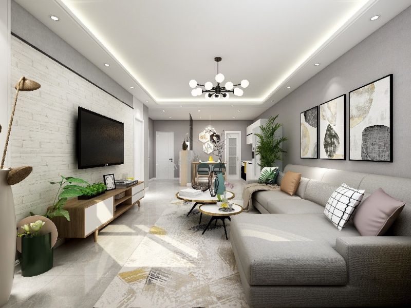 详情北欧风格70平米二居室客厅植物摆放装修效果图