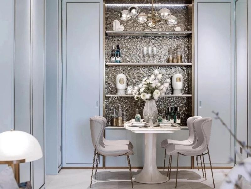 轻奢风格120平米餐厅背景墙酒柜装修效果图