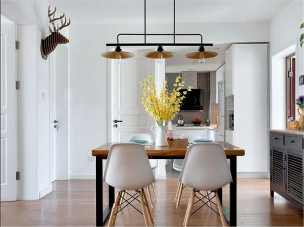 餐厅灯具安装在餐桌正上方,高度距离桌面70-90cm。
