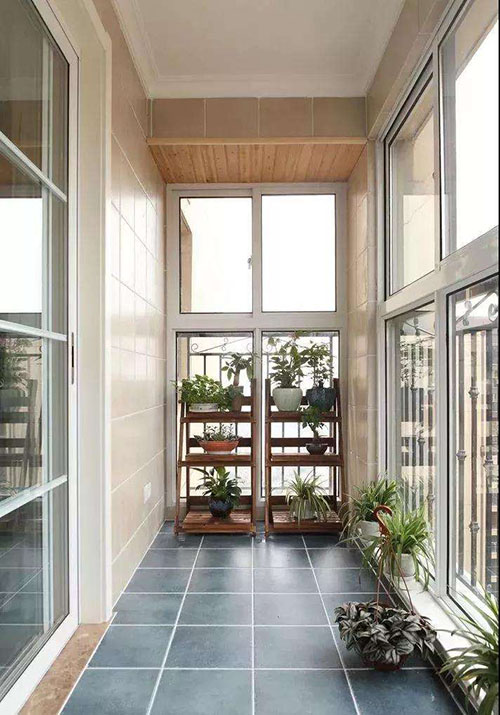 阳台窗户建议安装一层白纱帘或百叶帘,遮光的同时保护隐私。