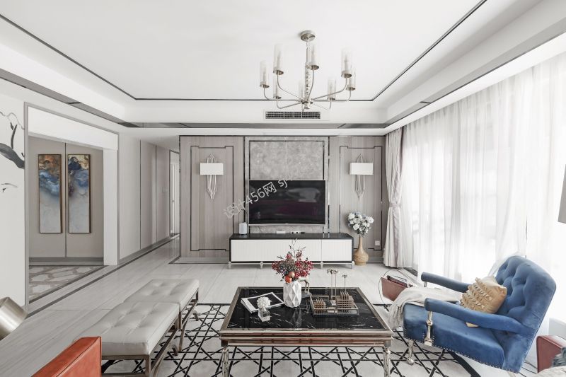 现代风格109平米客厅电视墙装修效果图赏析