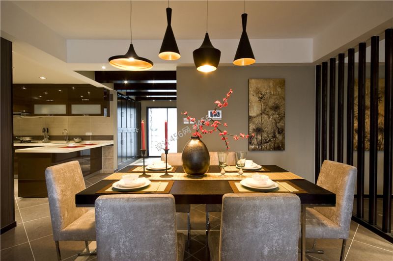 详情现代中式风格家庭餐厅吊灯装修设计效果图