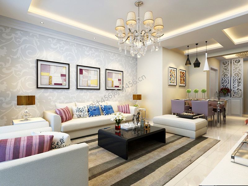 95平米现代简约三居室客厅沙发家装效果图
