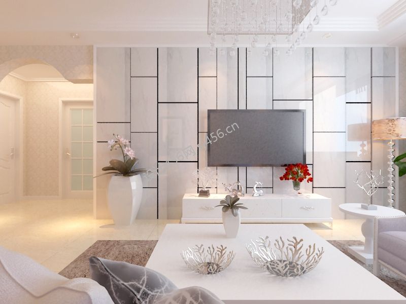 150平米现代简约瓷砖电视背景墙装修效果图片