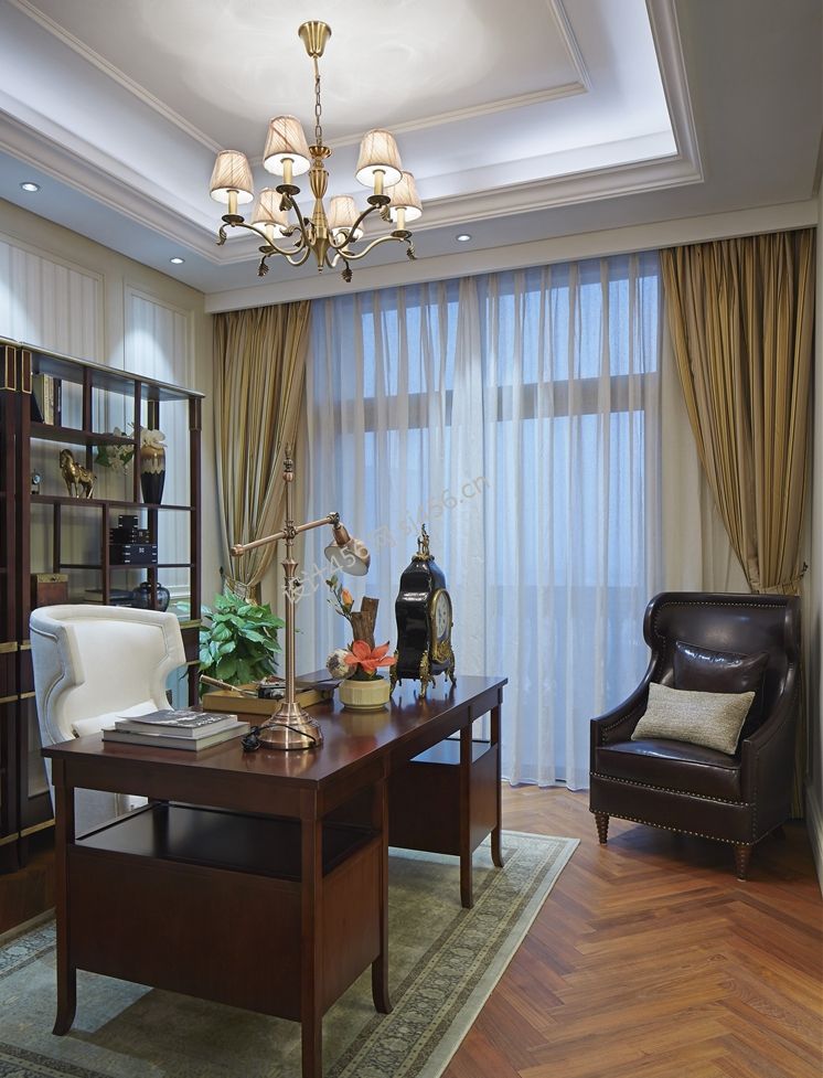 详情古典欧式书房装修效果图 2020实木书桌装修图片