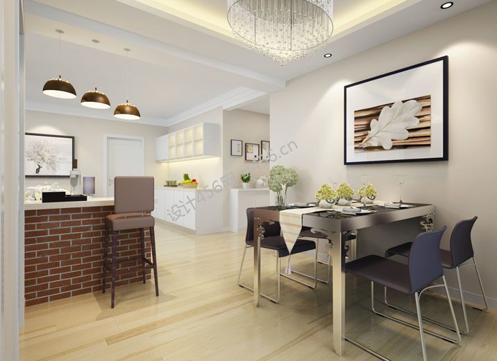 现代简约140平米三居室餐厅吧台设计效果图