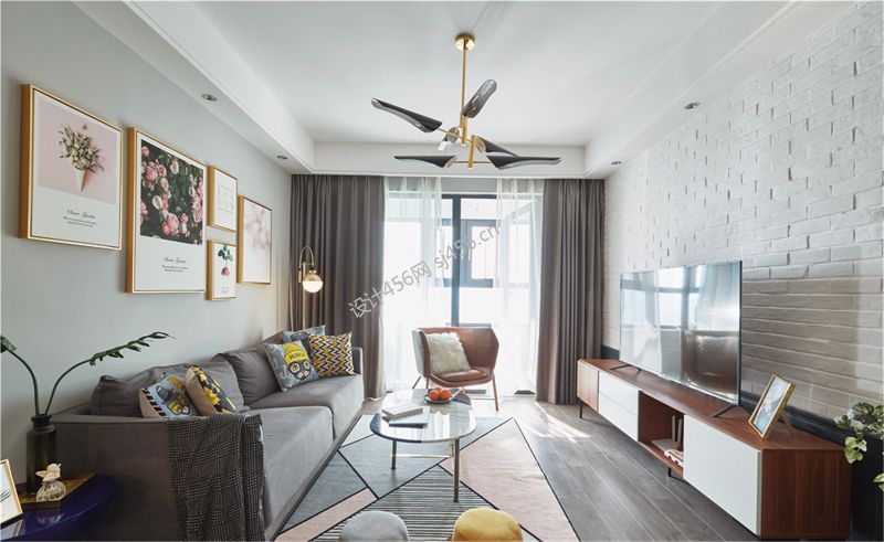 129平米简约北欧风格三居住宅客厅设计图片