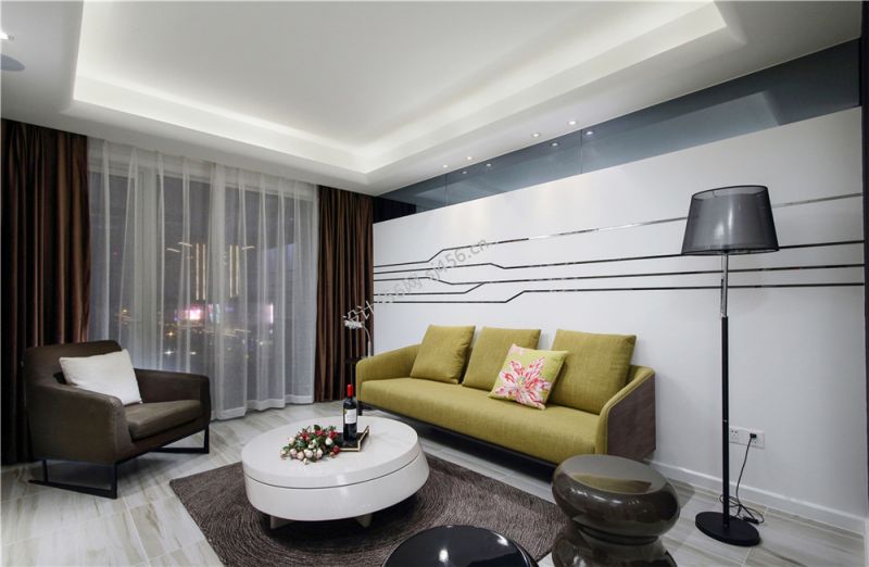 现代风格118平米三居室客厅背景墙装修效果图案例