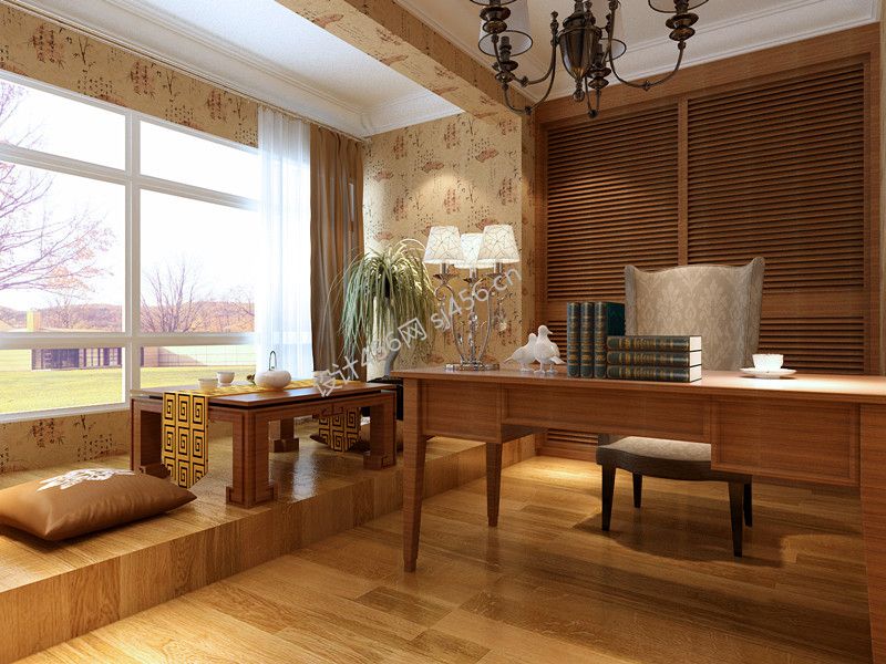 详情中式风格家庭书房茶室装修设计效果图赏析