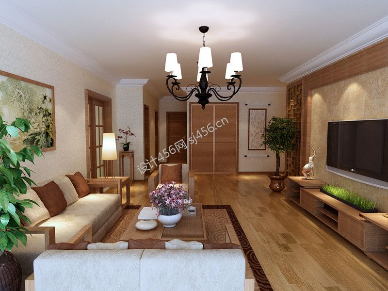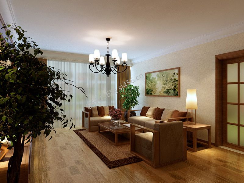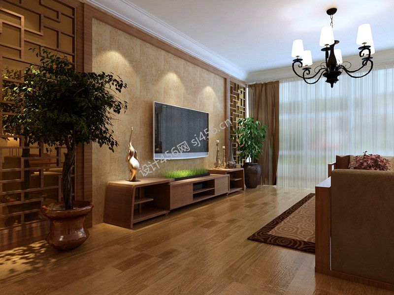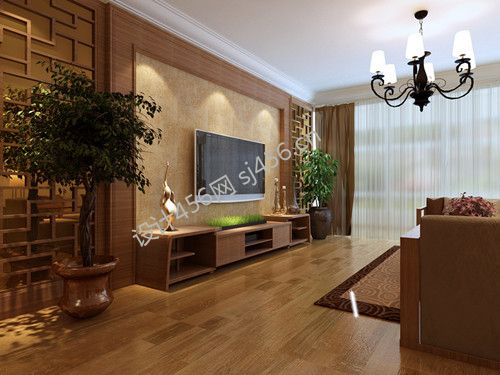 2020装修客厅木地板效果图 2020中式客厅盆栽发财树图片 客厅木地板图片