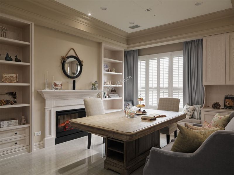 美式复古风108平米三居餐厅壁炉设计图片