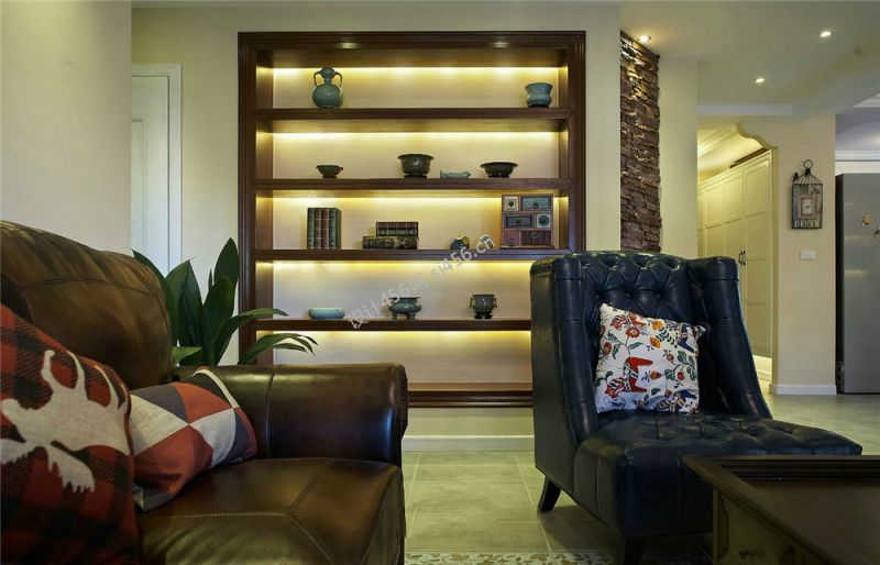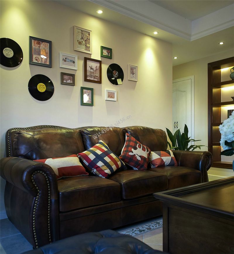 详情混搭风格三居室客厅真皮沙发摆放效果图赏析