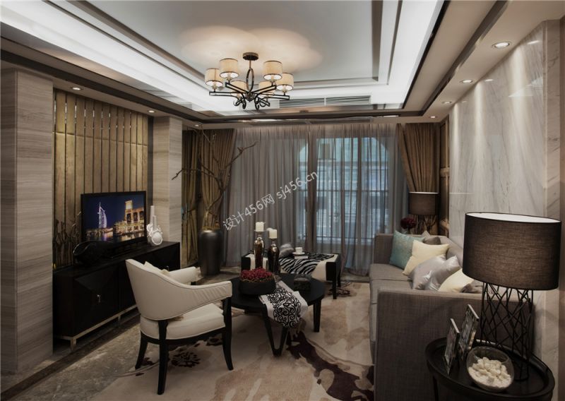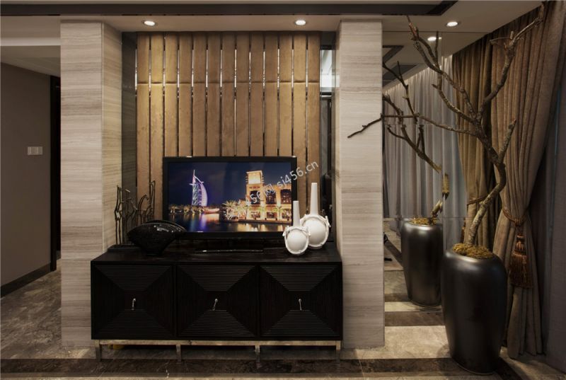中式混搭风格室内客厅电视柜设计图
