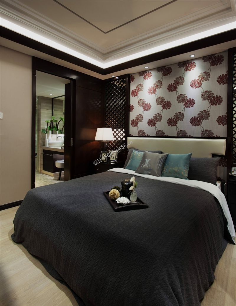 中式风格主卧室床头背景墙设计图